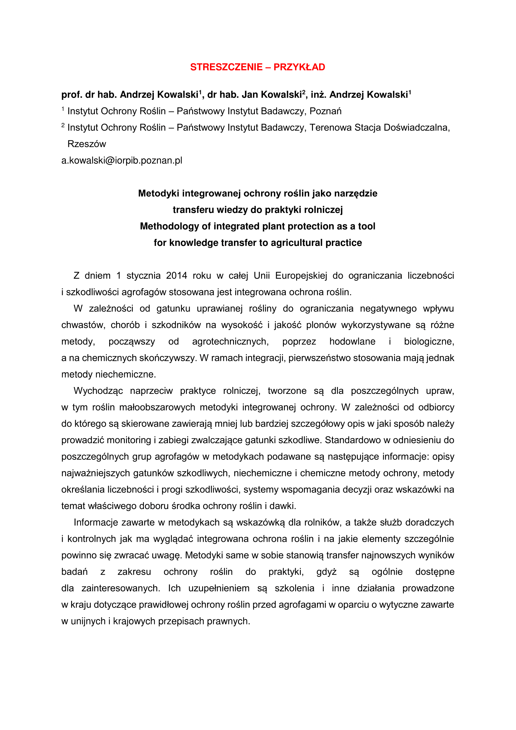 - nazwiska autorów wraz z tytułami naukowymi napisane pogrubioną czcionką,